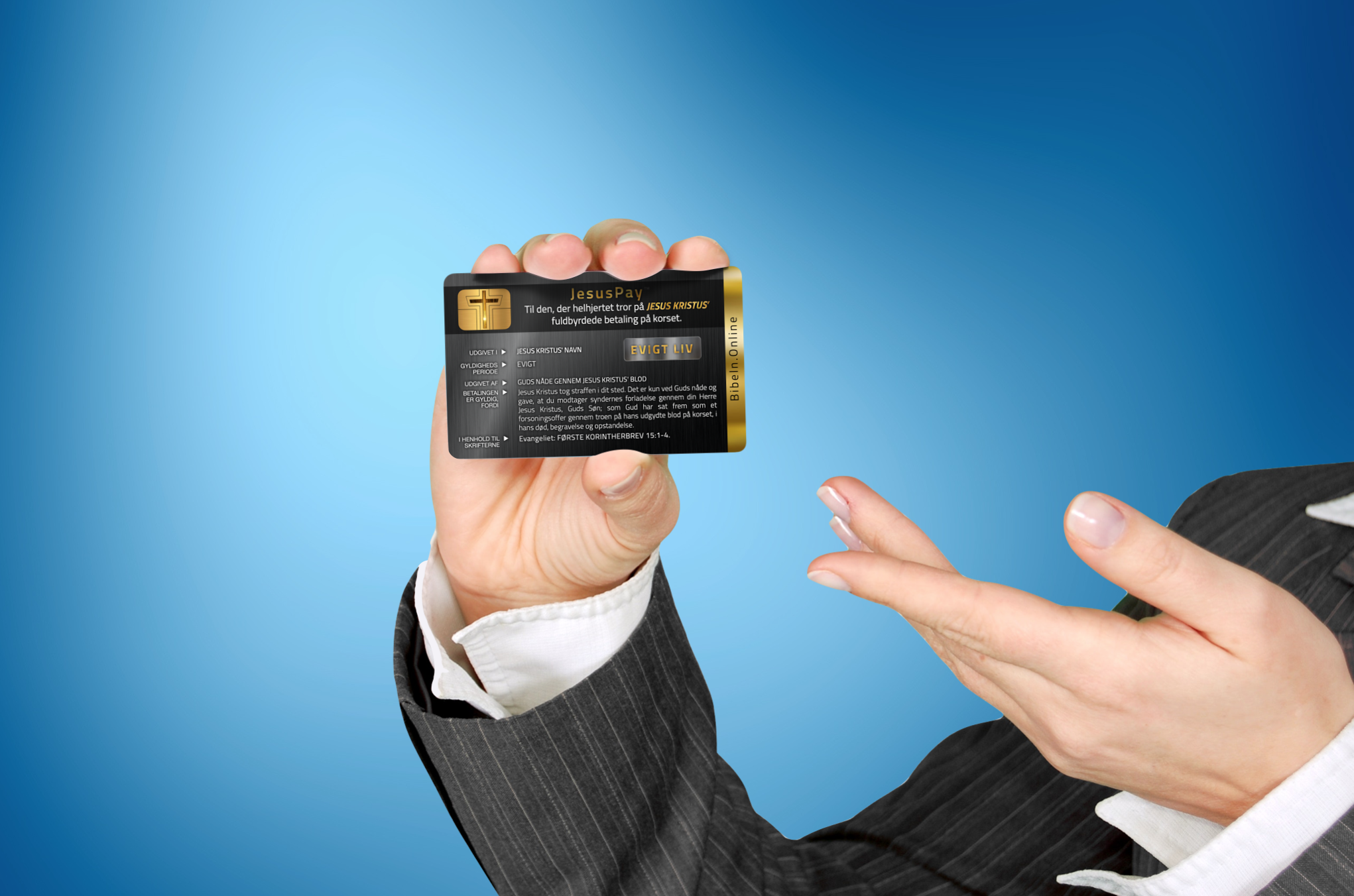 Billede: Betalingskortet JesusPay er en illustration af Jesu betaling på korset for vores synder.